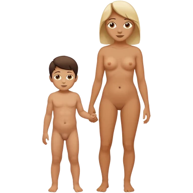 A mom and small son standing naked full body emoji