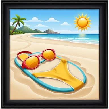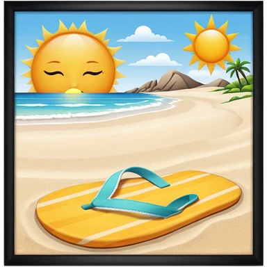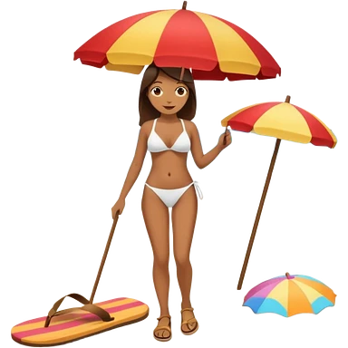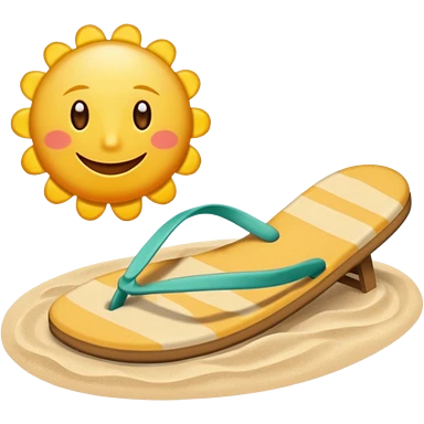 crie uma praia com guarda-sol, tanga na areia e chinelo ao lado emoji