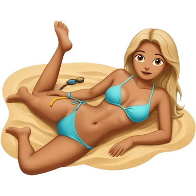 crie uma praia, com uma menina deitada numa tanga, na areia emoji