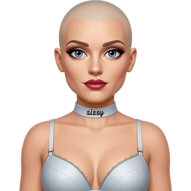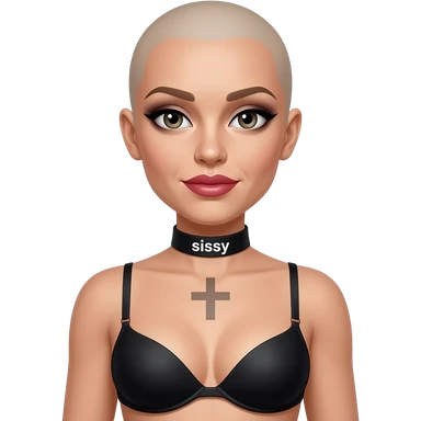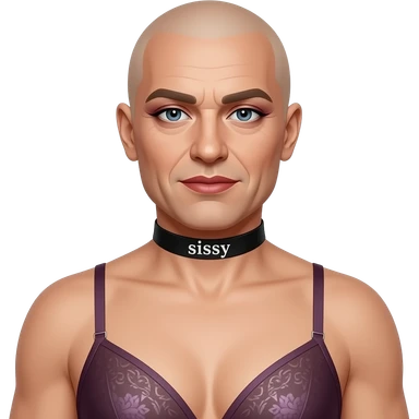 bald lipstick smokey eyes collar that says sissy 40yrs old bra with flat chest crossdress feminized emoji