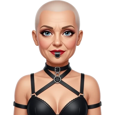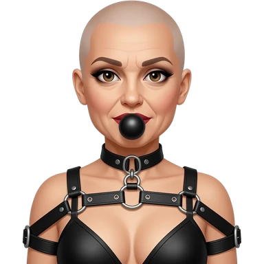 bondage bald lipstick eye shadow smokey eyes makeup bra 50 years old gag ball tied up harness feminized emoji