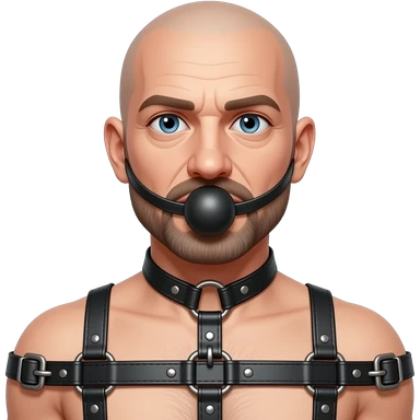bondage bald goatee 50 years old gag ball tied up harness feminized emoji