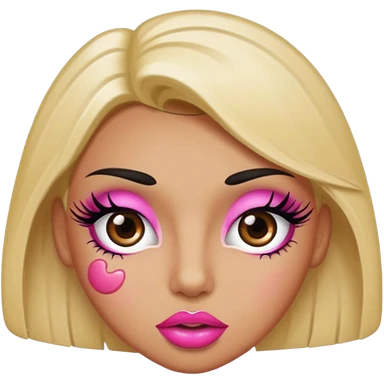 Standard emoji with pink pout lips and thick eyelashes emoji