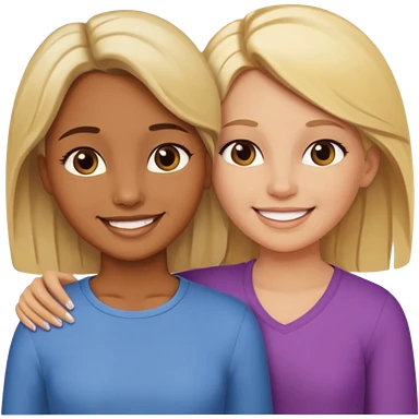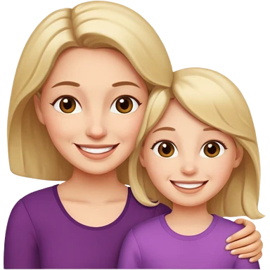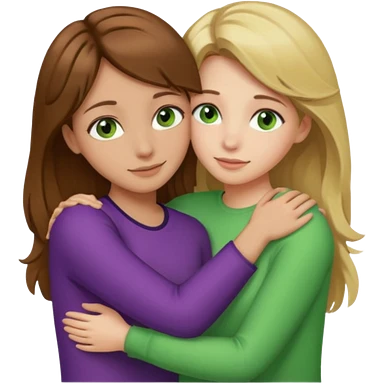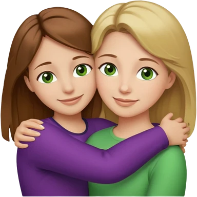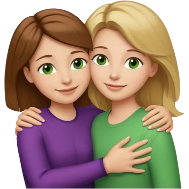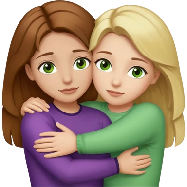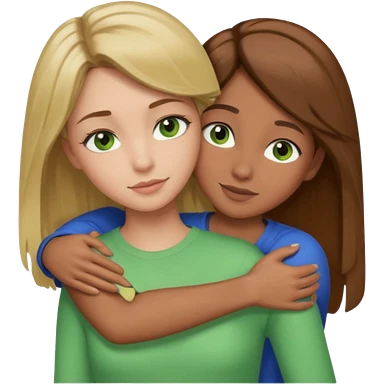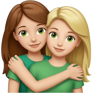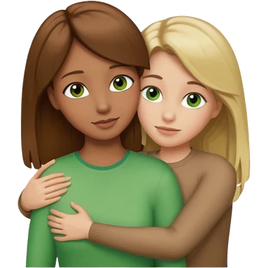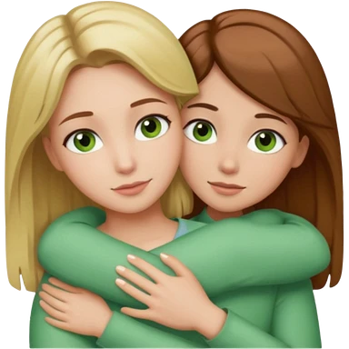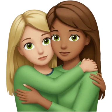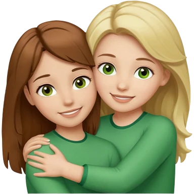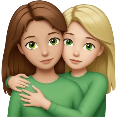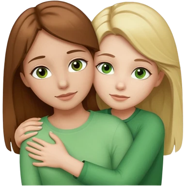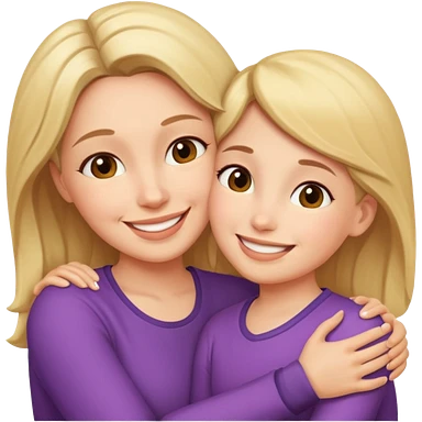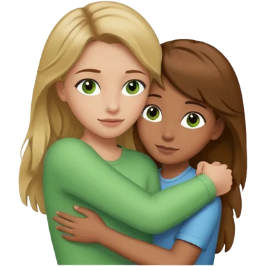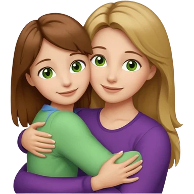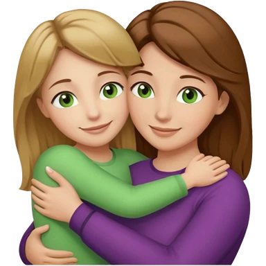 Maman cheveux marrons yeux marrons et fille cheveux blond yeux verts qui se font un câlin emoji