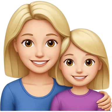 Maman cheveux marrons yeux marrons peau blanche et fille cheveux blond yeux verts peau blanche qui se font un câlin emoji