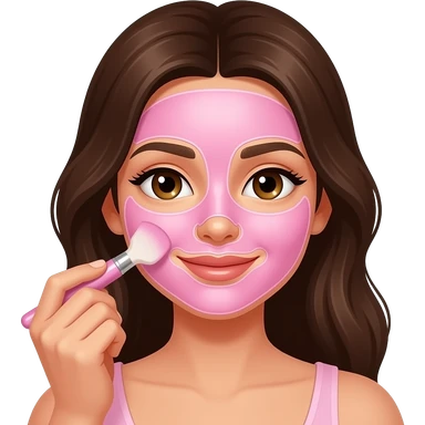 brunette girl doing a mask for skin care with a tool and pink stuff emoji