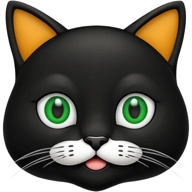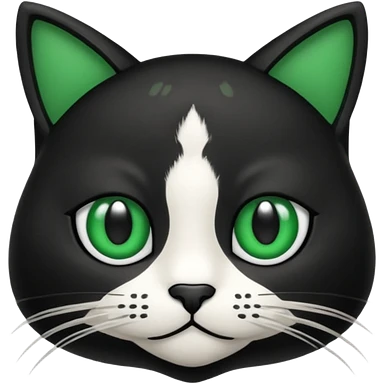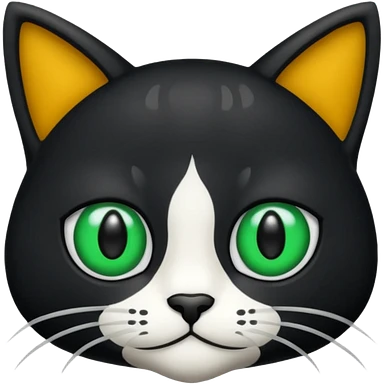 crie uma imagem de um gato preto com uma mancha branca no peito o gato tem olho verde tudo no estilo de animação emoji