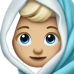 a little newborn baby wrapped in blue blanket, blue eyes emoji