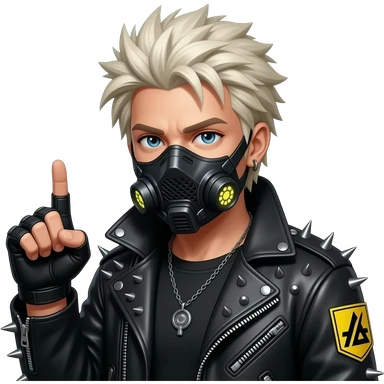 character with black tactical face mask, LED circle eyes on mask, spiked punk jacket, bleached blonde messy hair, fingerless gloves, DedSec yellow patch — Watch Dogs 2 style emoji
