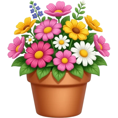 Hazme un emoji de una flor de una maceta con flores rosas y otras con flores en la misma maceta emoji