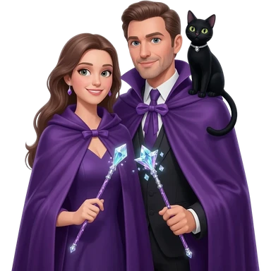 magician couple and their pet cat emoji