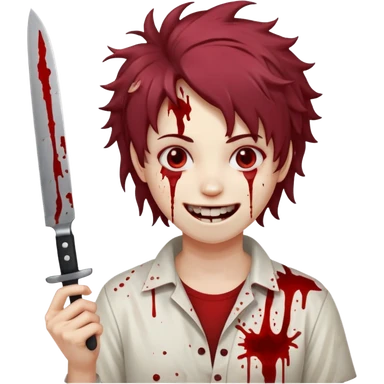 Physcopath crazy smile holding with a knife splattered with blood and just a head emoji