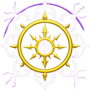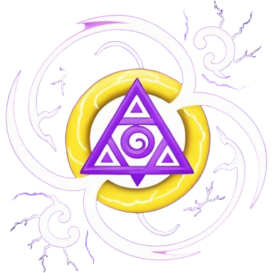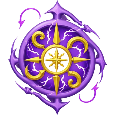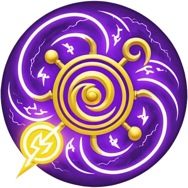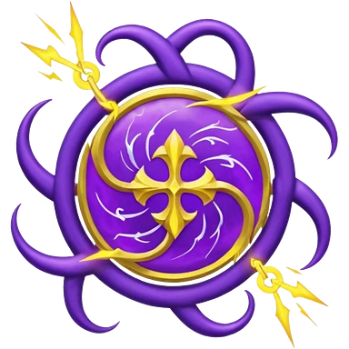 Wiz 101 casting sigil inspired storm magic, compose it of swirling clouds and lightning bolts and use rich purple and gold as the colors emoji