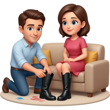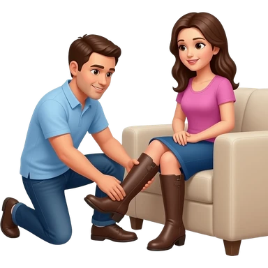 Man taking off woman’s painful boots at home emoji