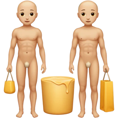 a close-up, minimalist shot of a viscous, pearly substance slowly dripping from a wooden spatula against a neutral gray background. emoji