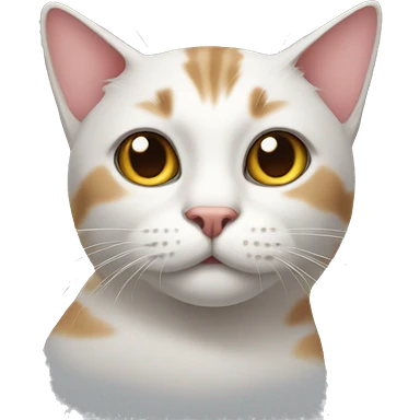 a chubby calico cat with tan, grey, and white markings and green eyes emoji