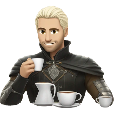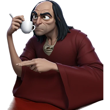 A skull face with white eyes and a black hooded robe drinking tea emoji