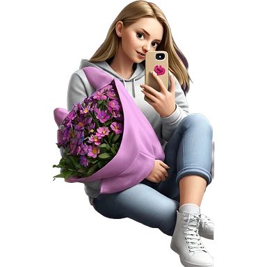 girl taking selfie with flowers emoji