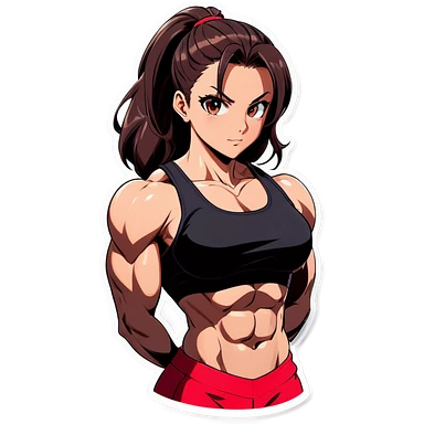 Anime woman bodybuilder with six pack and beautiful faces emoji