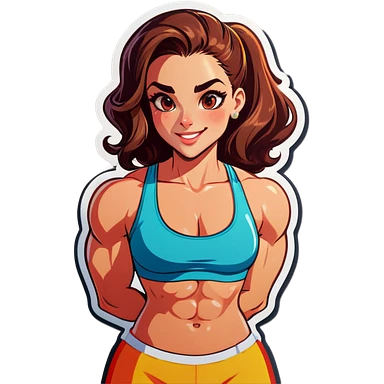 Anime woman bodybuilder with six pack and beautiful face. From head to feet picture emoji