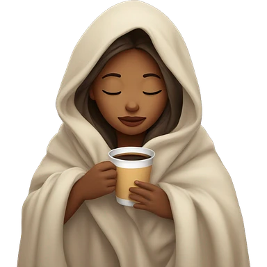 girl inside a blanket sipping coffee eyes closed emoji