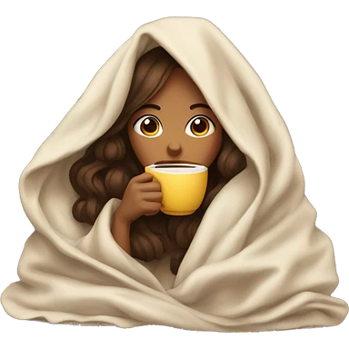 girl inside a blanket sipping coffee eyes closed emoji