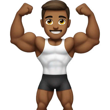 Bodybuilder with a brown tan, dark slick back hair, flexing his biceps emoji