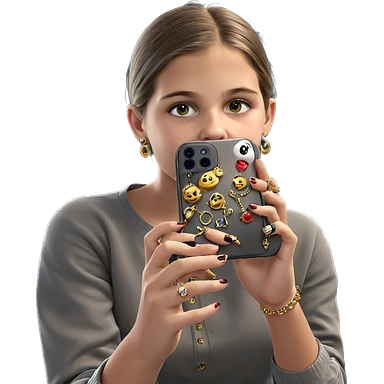girl holding smartphone in focus emoji