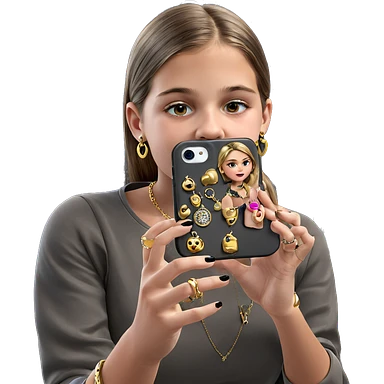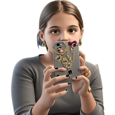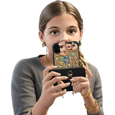 girl taking selfie with jewelry emoji