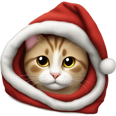 cat snuggeled into christmas blanket emoji