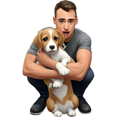 boy holding puppy by door emoji
