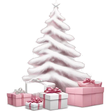 Light pink Christmas gifts under a white Christmas tree emoji