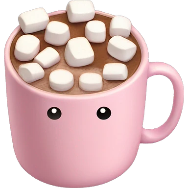 Light Pink mug of hot chocolate with marshmallows emoji
