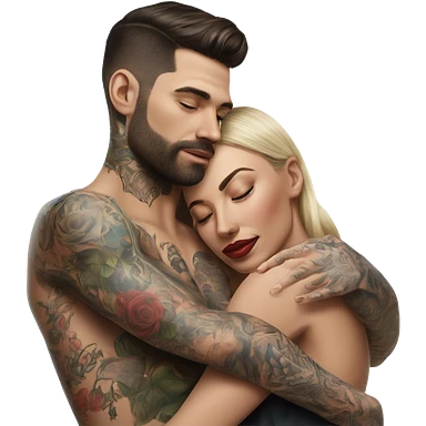 Hyper Realistic beautiful woman in the arms of a very handsome tattooed man kissing emoji
