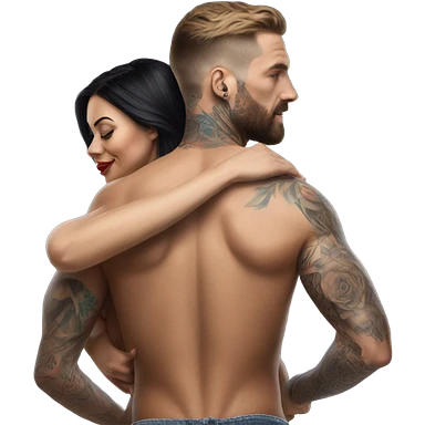 Hyper Realistic beautiful woman climbing a handsome tattooed man's back emoji