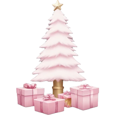 Light pink Christmas gifts under a white Christmas tree emoji
