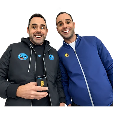 White girl with long dark curly hair hugs white girl with brown straight hair with bangs emoji