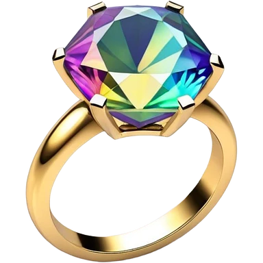 Multichrome Colorshifting 3D diamond, 14k gold ring emoji
