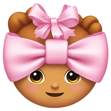 Chica con cabello marrón y rubio ojos cafés sacando la lengua y con un lazo rosa claro en la cabeza y ropa rosa claro emoji
