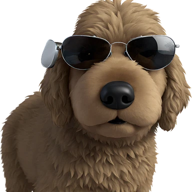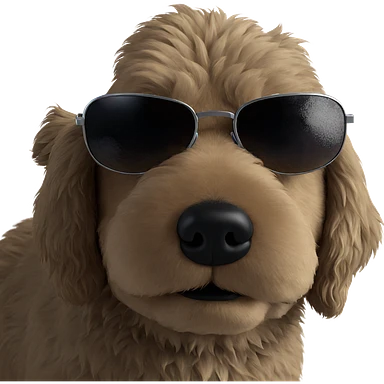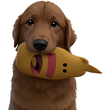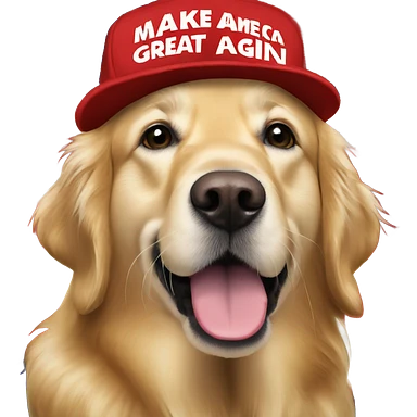 Golden retriever wearing a red hat with the text “make America great again” on it emoji