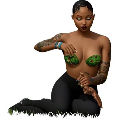 tattooed girl in grass emoji