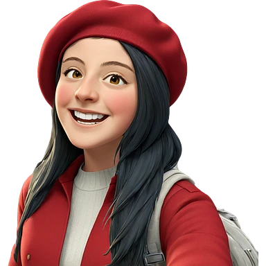 girl in beret smiling outdoors emoji