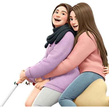 girls hugging by christmas tree emoji