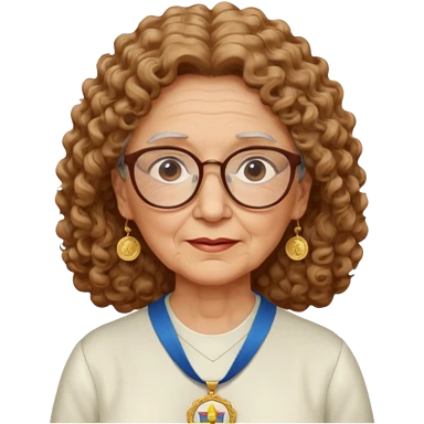Una abuela con el pelo rizado con el pelo moreno claro , con gafas, siempre va con blusa de un color clarito y siempre va con una medalla de la virgen del pilar. Su piel de color piel. emoji
