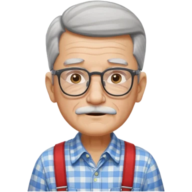 Un abuelo que tenga medio corte pelo de color gris , con gafas y siempre va con camisa de cuadros y tirantes. Con la piel medio moreno emoji