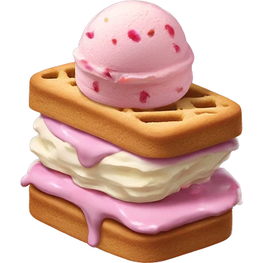 a ice cream sandwich with a vanilla confetti cookie and strawberry ice cream in the inside emoji