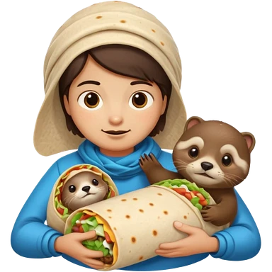 A cute little charming fox cub in a winter hat and scarf shows his tongue emoji