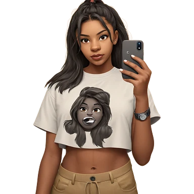 girl taking selfie in shirt emoji