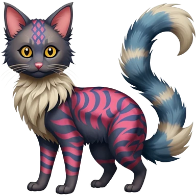Colorful exotic Fantasy-Ragdoll-Fakémon-Lykoi-feline-hybrid (full body) emoji
