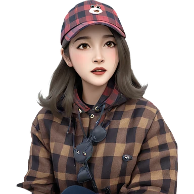 girl in plaid with hat emoji